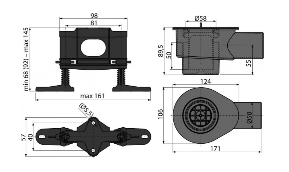 Сифон AlcaPlast DN50 и комплект регулируемых ног для модулярного желоба APZ13 высокий 58 л/мин APZ-S12