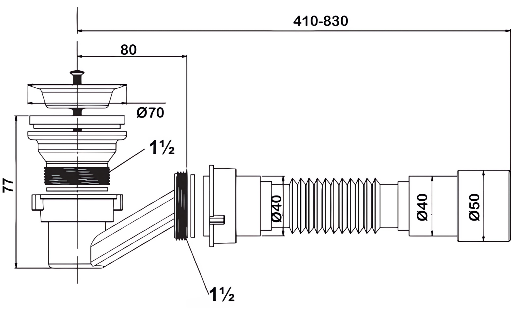 Сифон Bettoserb 125340 для поддона/раковины на слив 50-60мм