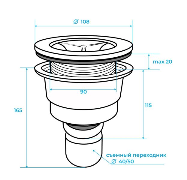 Сифон для поддонов из искусственного камня RGW ST с вертикальным сливом. Подробнее