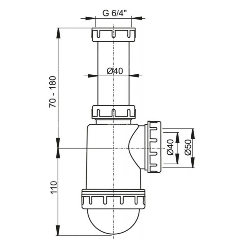 Сифон для мойки AlcaPlast c накидной гайкой 6/4" и подводкой A443P-DN50/40