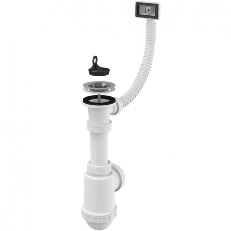 Сифон для мойки AlcaPlast с нержавеющей решеткой ?70 гофропереливом без штуцера A444-DN50/40 купить