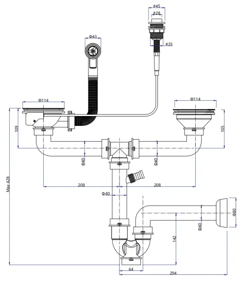"Сливная арматура для одночашевой мойки.