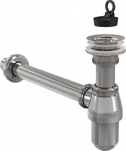 - Комплект цельнометаллического сифона и сливного клапана раковины