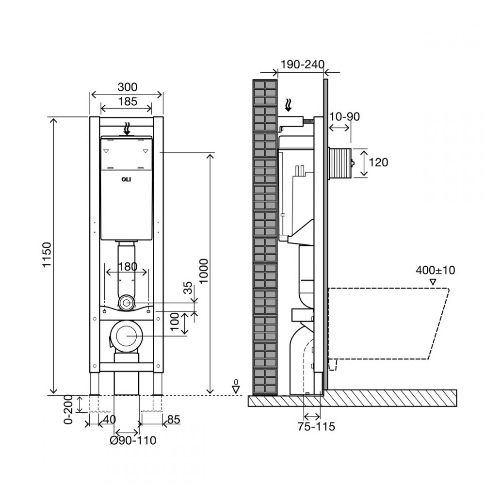 • Совместима с моделями подвесных унитазов с расстоянием между креплениями 180мм