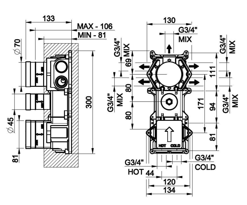 Скрытая часть для термостата высокой производительности Gessi 43111.031