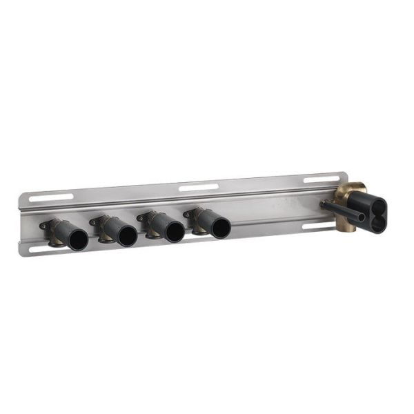 Термостат Gessi HI-FI с полочкой, встраиваемый, до 4 функций одновременно, в цвете Chrome — это продвинутое решение для современной ванной комнаты, которое сочетает функциональность с элегантным дизайном. Этот термостат способен управлять до четырьмя функциями одновременно, что делает его идеальным для сложных душевых систем, где требуется точная настройка температуры и распределения воды между несколькими источниками, например, душем, ручным душем или даже боковыми распылителями.