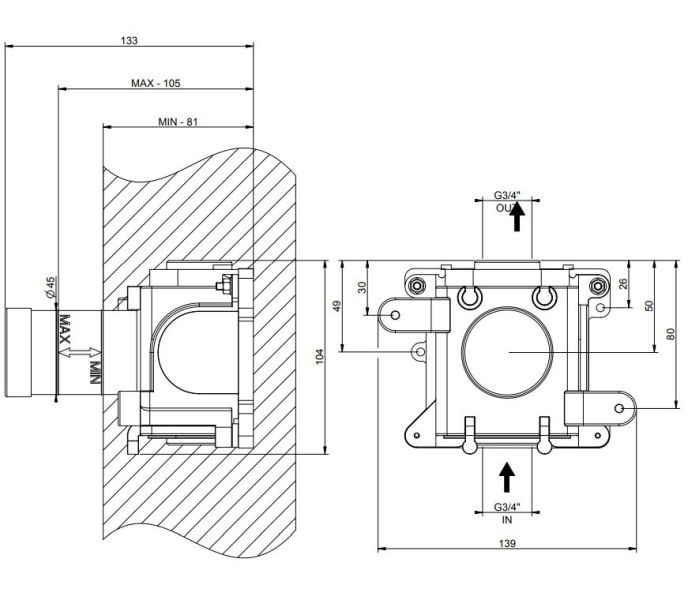 Скрытая часть запорного вентиля для термостата высокой производительности Gessi Inciso 43283.031 хром