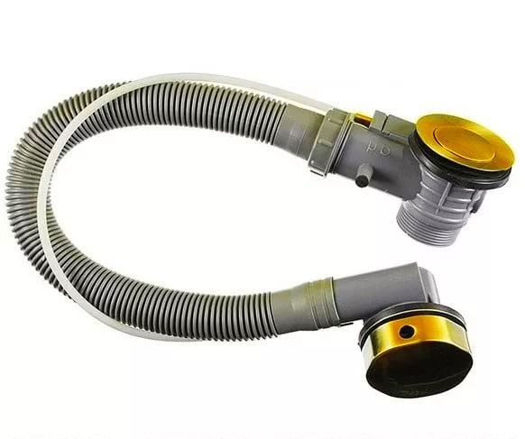 Слив-перелив BOHEME (Италия) полуавтомат;Декоративная накладка диаметром 70 мм в цвете золото идёт в комплекте;Материалы: сантехнический пластик, сантехническая латунь.