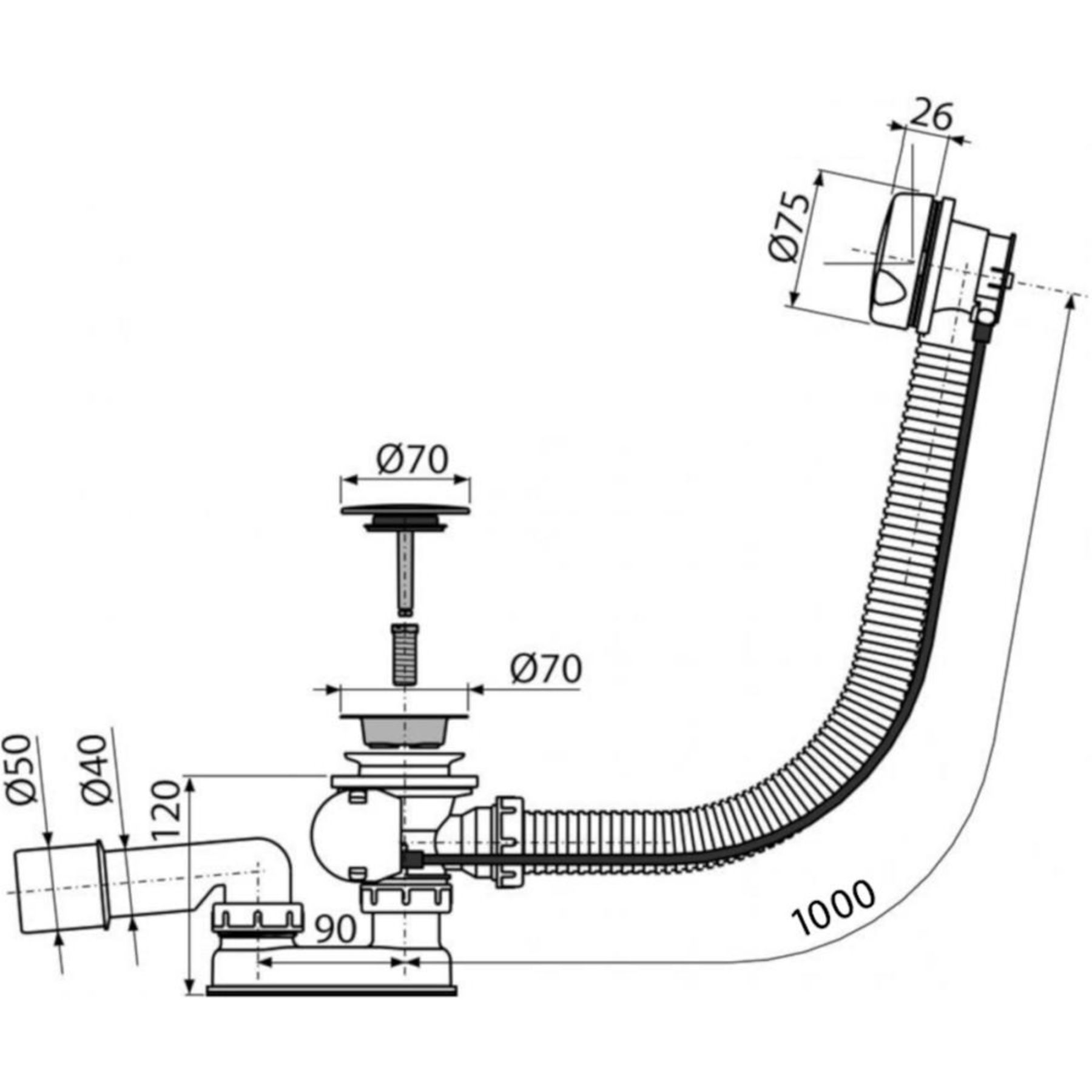 Слив-перелив для ванны AlcaPlast пластик 80см белый A51BM-80