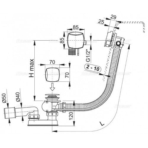 Слив-перелив для ванны AlcaPlast с напуском воды через перелив клик-клак 80см металл-пластик хром A508KM-80 купить