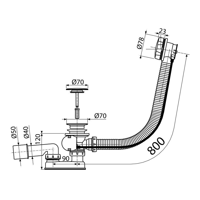 Слив-перелив Koller Pool для ванны, полуавтомат, 80 см, хром, B70CPMA80Слив-перелив для ванны полуавтомат