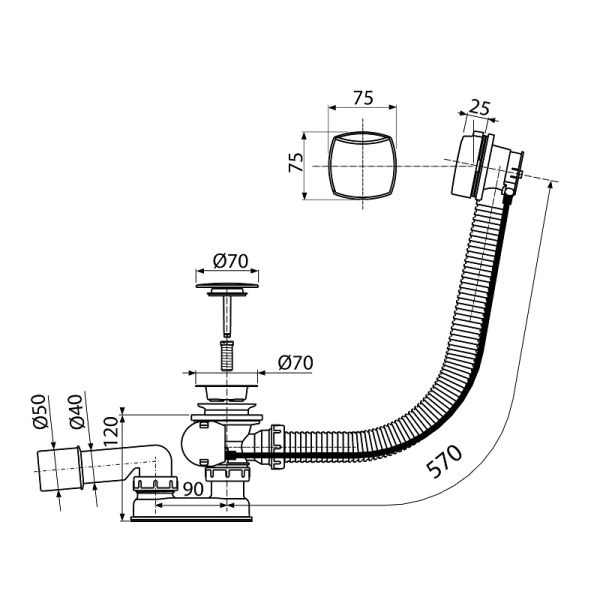 Слив-перелив Koller Pool для ванны, полуавтомат, 57 см, хром, B70CPPAСлив-перелив для ванны полуавтомат