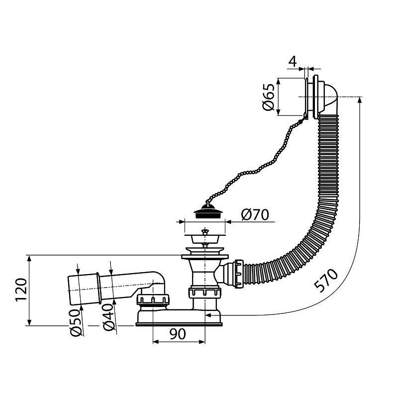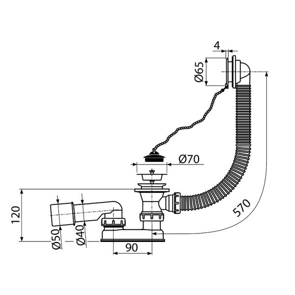 Для ванн со стоковым отверстием Ø52 мм.