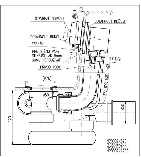 Слив-перелив Rav Slezak NP0002/570CMAT черныйNP0002/570CMAT Сифон для ванны металл/пластик 570 мм МАТОВЫЙ ЧЕРНЫЙ, напол водой через слив-перелив