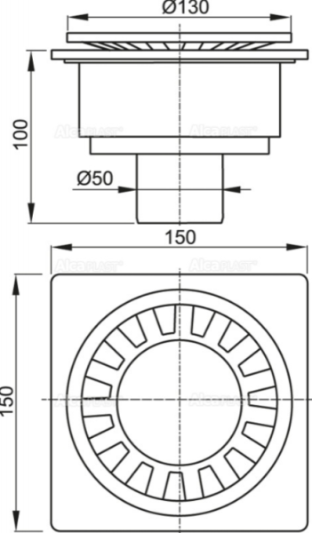 Сливной трап AlcaPlast 150 ? 150/50мм решетка - белая APV16