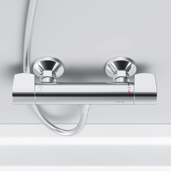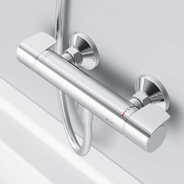 термостатический картридж с высокочувствительным термоэлементом и быстрой реакцией на изменения температуры или давления надежно защищает от ожога даже при внезапном отключении холодной воды;