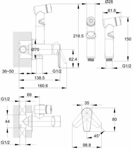 Смеситель Cersanit Vero 64106 с гигиеническим душем