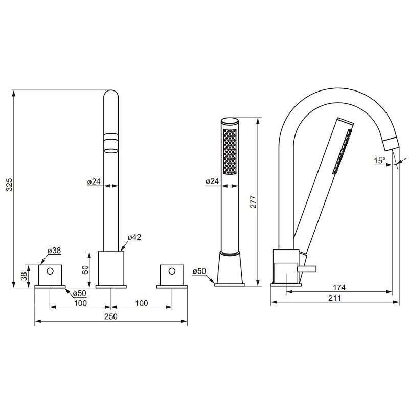 Смеситель Damixa Scandinavian Pure 360400000 на борт ванны