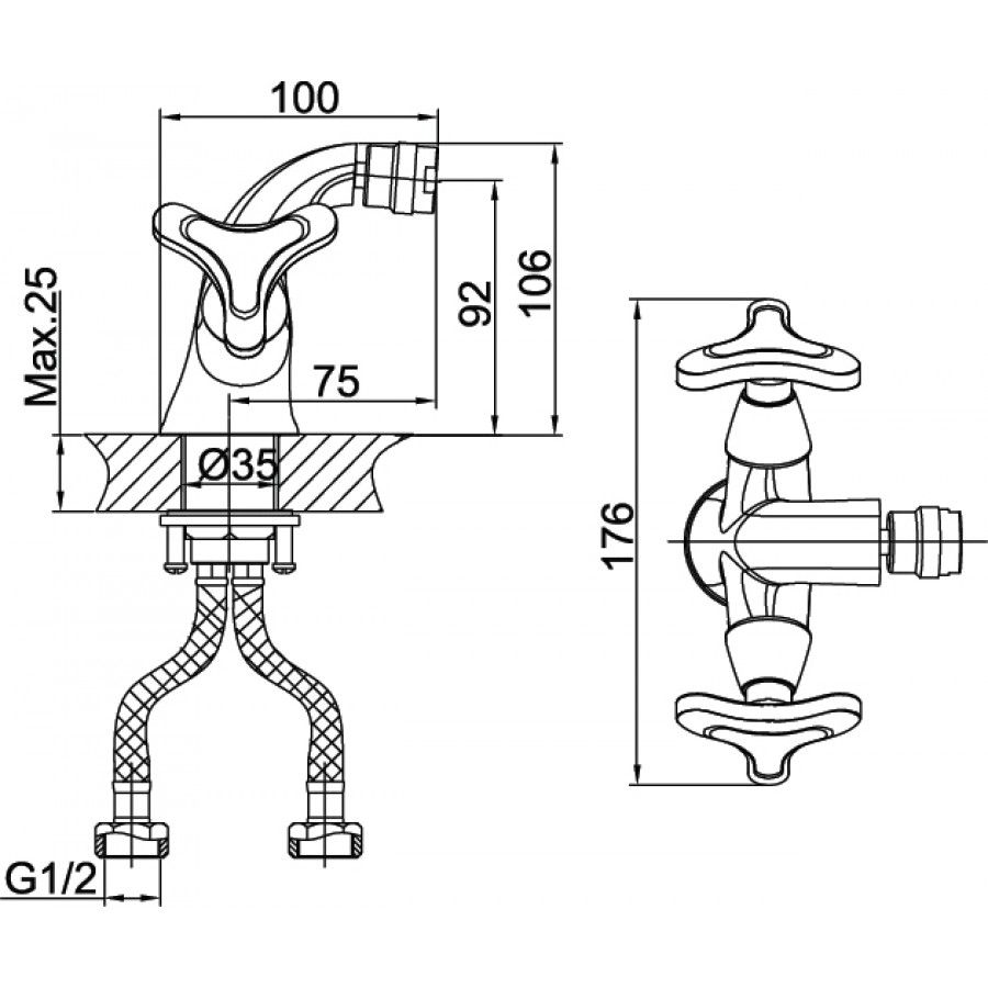 • Высота смесителя: