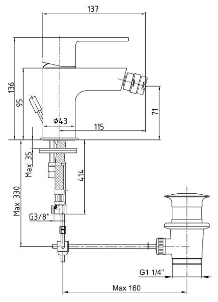 • Высота смесителя: