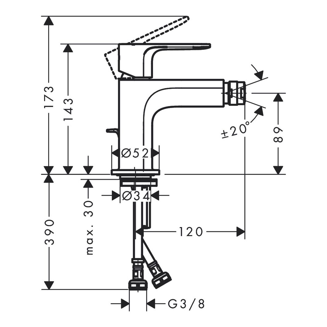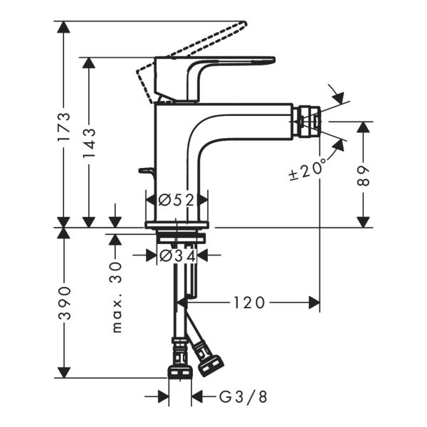 Смеситель для биде Hansgrohe Rebris E 72211000 хромвыступ 120 мм аэратор с шарнирным соединением тип струи: обычная струя максимальный расход воды при 3 бар: 5 л/мин керамический узел смешивания регулируемое ограничение температуры подходит для проточных водонагревателей донный клапан, 1¼’ материал сливного набора: синтетический