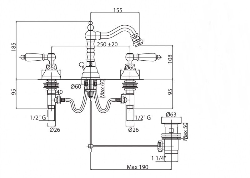 Смеситель для биде на три отверстия, золото Cezares FIRST-BBS2-03/24-Bi купить