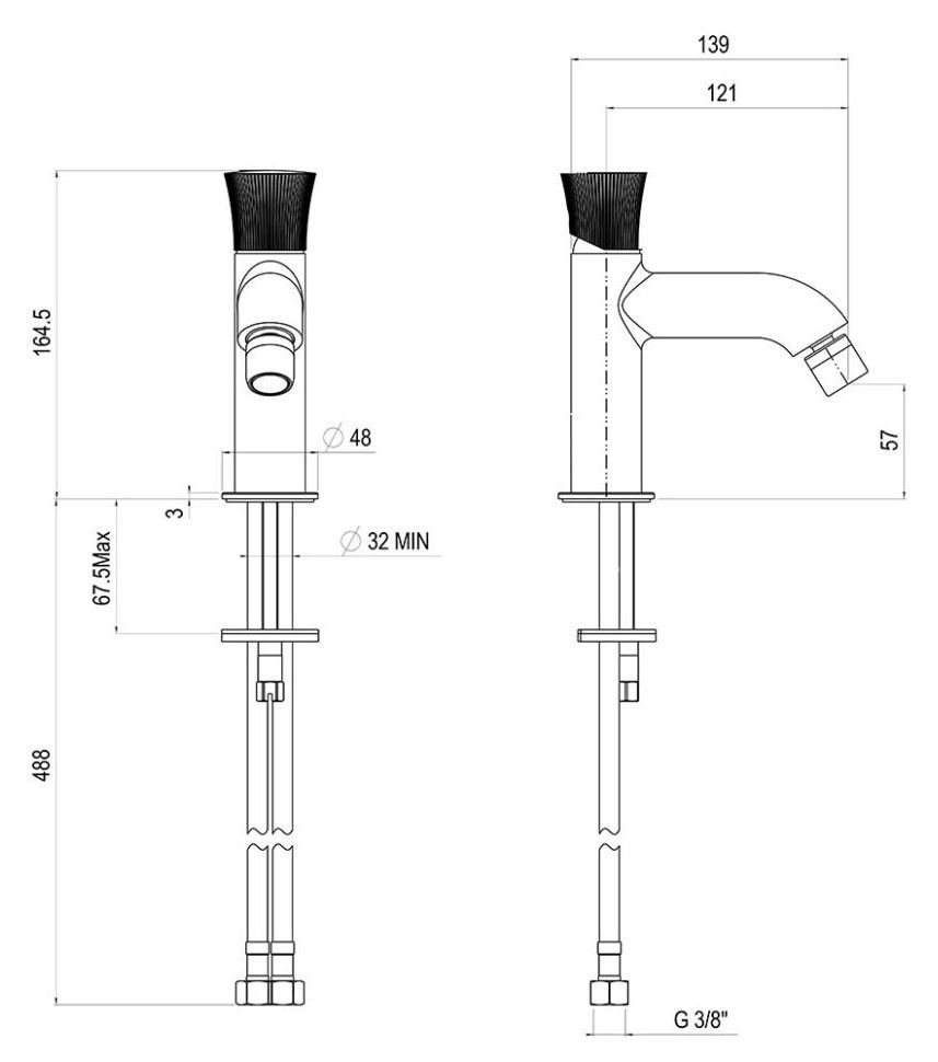 • Высота смесителя: