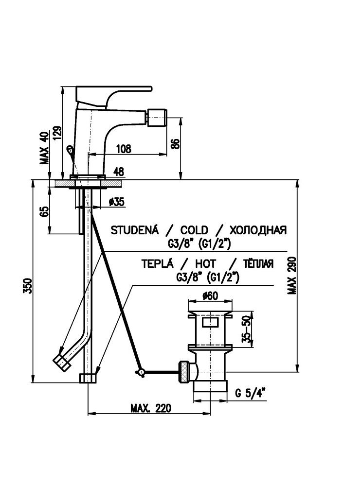 • Высота смесителя: