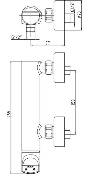 - Угол выпуска душа: 77 мм