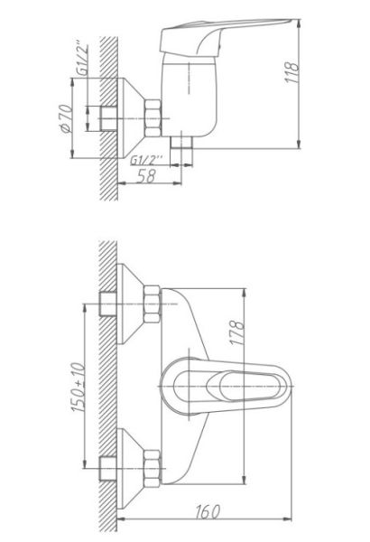 Смеситель изготовлен из латуни.Диаметр декоративных чашек 70 мм.Душевой гарнитур в комплекте.Межосевое расстояние (расстояние между выходом горячей и холодной трубы) 150 мм.Данное расстояние изменяется за счет входящих в комплект эксцентриков на 10 мм. в большую или меньшую стороны.Цвет хром.