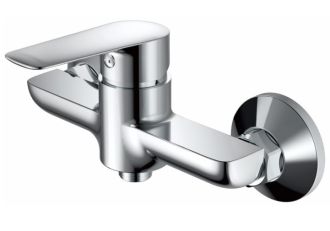 Смеситель изготовлен из латуни.Диаметр декоративных чашек 70 мм.Душевой гарнитур в комплекте.Межосевое расстояние (расстояние между выходом горячей и холодной трубы) 150 мм.Данное расстояние изменяется за счет входящих в комплект эксцентриков на 10 мм. в большую или меньшую стороны.Цвет хром.