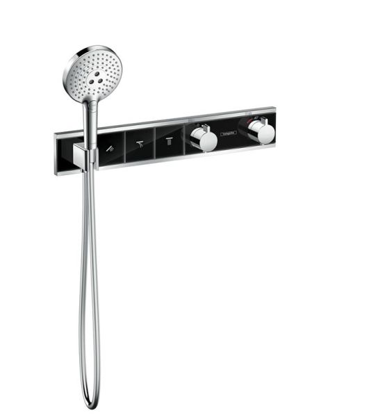 Смеситель Hansgrohe RainSelect для душа, термостатический, черный/хром, 15356600Компания Hansgrohe производит продукцию высочайшего качества формы и функций. Благодаря этому она радует клиентов всего мира долгие годы. Планка брендов Hansgrohe и Axor установлена высоко: при производстве используются исключительно высококачественные металлы, пригодные для использования с питьевой водой и прошедшие длительные испытания.Описание:состоит из: термостат, держатель для душа