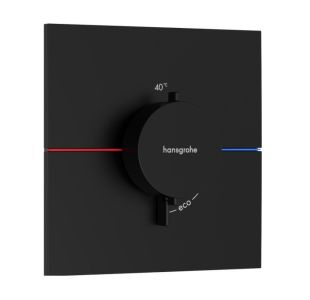 Hansgrohe ShowerSelect Comfort E 15574670 Центральный термостат - внешняя часть (чёрный матовый). Без запорно-переключающего клапана. Контроль температуры и расхода воды; контроль расхода воды с функцией остановки; картридж термостата; максимальный расход при 3 бар: 34,8 л/мин.; расход верхнего выхода: 32 л/мин; расход нижнего выхода: 32 л/мин; расход при одновременном использовании всех выпусков: 34,8 л/мин.; мин. рабочее давление: 1 бар; макс. рабочее давление: 10 бар; накладка может быть выровнена на +/- 3°; простой монтаж благодаря предварительно смонтированному функциональному блоку, ручки всегда на одной высоте независимо от глубины установки базового комплекта; безопасная остановка при 40 °C; ограничение температуры регулируемое; термостат дает возможность термической дезинфекции; материал ручек: металл.; дополнительно необходима скрытая часть арт. 01500180, в комплект поставки не входит. ShowerSelect вызовет ваши любимые ощущения от принятия душа одним нажатием кнопки. Интуитивное управление и высокая точность. Система управления душем скрытого монтажа позволяет увеличить пространство под душем и сочетает в себе передовые технологии hansgrohe с качеством дизайна.