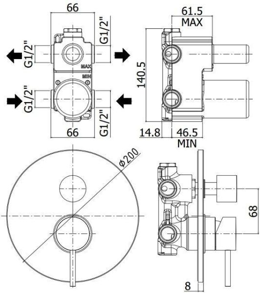 Смеситель встраиваемый для душа на 2 выход с накладкой из металла диам.200мм, девиатор-картридж, 2 положения+1 комбо, ХромСмеситель для душа Paffoni Light LIG018CR (с внутренней частью) предназначен для душа. Своим ярким дизайном и цветом он внесет в интерьер помещения стильный акцент, подчеркнув его своеобразие. Он произведен из надежного материала латунь, который не ржавеет, а потому прослужит долго. Модель является прекрасным примером продуманной конструкции. Управление в смесителе предусмотрено однорычажное, что удобно для любителей такого типа смесителей. Высокую надежность и долговечность смесителю гарантирует керамический картридж, отличительной чертой которого является выверенная конструкция - залог четкой работы в течение продолжительного времени. Не зря гарантия на смеситель – 5 лет, в течение которого производитель Paffoni заверяет в его бесперебойной работе. Форма излива в смесителе - нет, а тип - нет. При покупке учтите, что подводка у смесителя жесткая, что требуется знать для его установки.