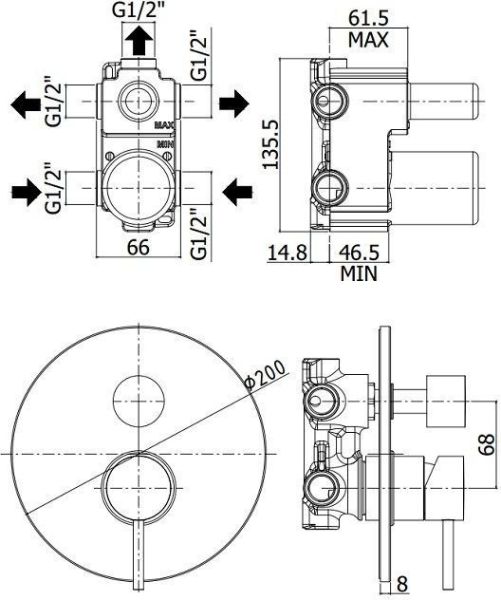 Смеситель встраиваемый для душа на 3 выход с накладкой из металла диам.200мм, девиатор-картридж, 3 положения+3 комбо, ХромСмеситель для душа Paffoni Light LIG019CR (с внутренней частью) предназначен для душа. Своим сдержанным дизайном и колористикой он внесет в интерьер помещения стильный акцент, подчеркнув его своеобразие. Он произведен из надежного материала латунь, который не окисляется, а потому прослужит не создавая проблем. Модель является прекрасным примером сочетания высокого качества и привлекательной цены. Управление в смесителе предусмотрено однорычажное, что порадует любителей такого типа смесителей. Высокую жизнеспособность и основательность смесителю гарантирует керамический картридж, главным преимуществом которого является проработанная конструкция - залог безупречной работы в течение долгого времени. Не зря гарантия на смеситель – 5 лет, в течение которого производитель Paffoni заверяет в его бесперебойной работе. Форма излива в смесителе - нет, а тип - нет. При покупке учтите, что подводка у смесителя жесткая, что необходимо знать для его монтажа.