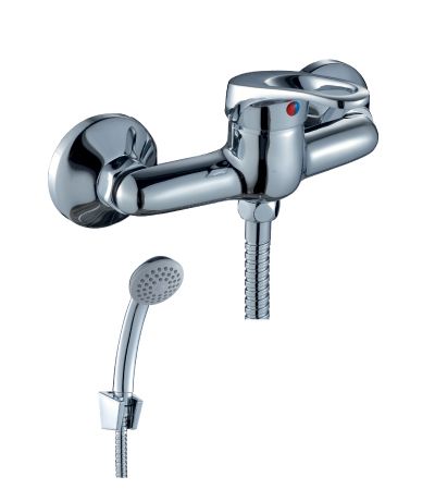 Смеситель Rossinka B35-41 для душа. Керамический картридж 35 мм, аксессуары в комплекте (шланг 1,5 м, настенное крепление, 1-функциональная лейка с функцией легкой очистки) Присоединительная группа (эксцентрики с отражателями) для вертикального крепления