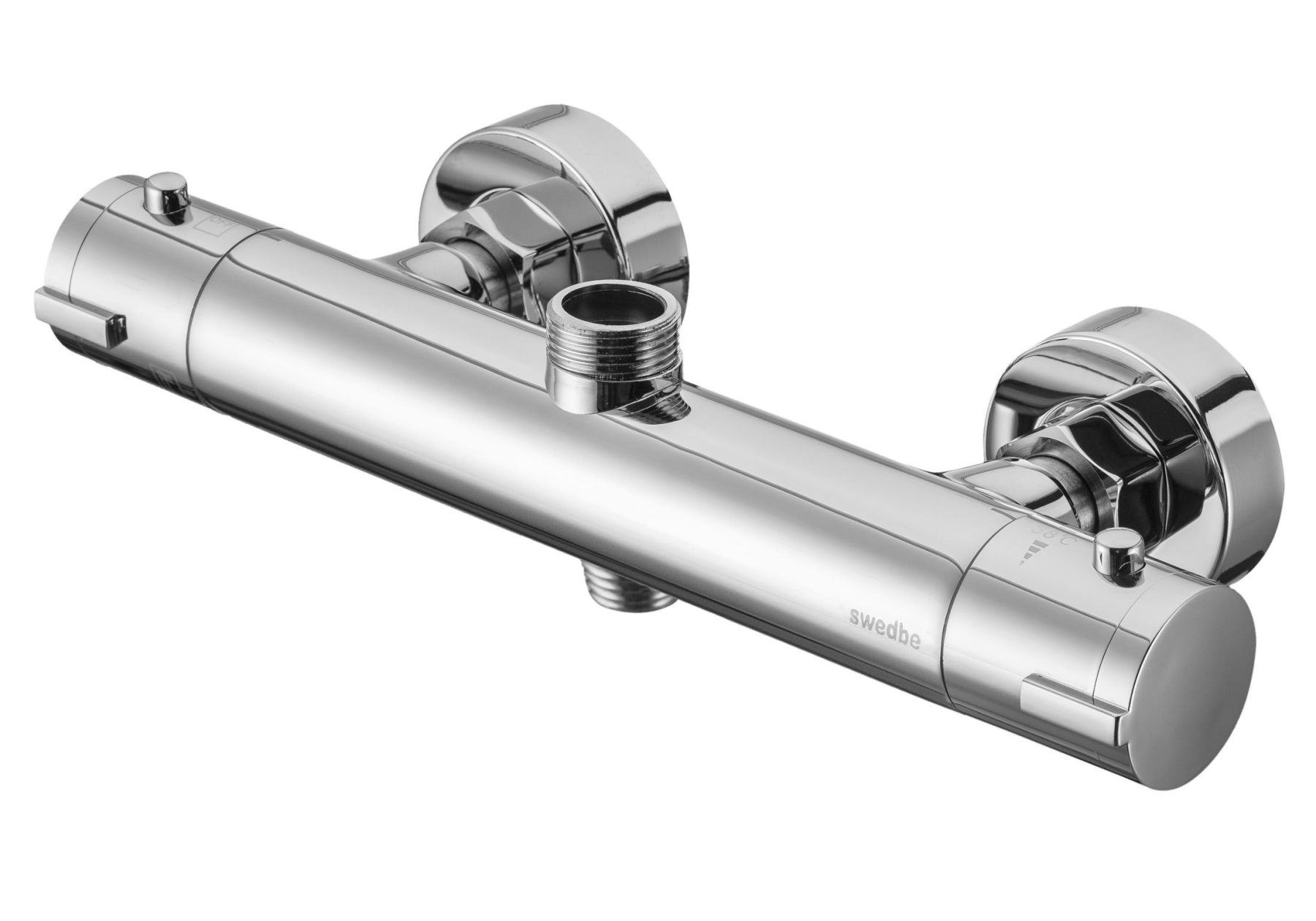 Термостат для душа Swedbe Hermes— надёжный смеситель от шведского бренда Swedbe. Оснащён «умным» картриджем. Благодаря обратным клапанам решается проблема «выдавливания» холодной воды горячей из-за разницы давления, когда температуру воды отрегулировать невозможно. Клапаны чётко разделяют холодную и горячую воду, исключая подмес. Это важно в тех домах, где есть сильная разница давления в стояках. В моделе предусмотрен ограничитель температуры, предустановленный на отметке 38 градусов, что считается идеальным значением для комфортного мытья. Можно не бояться обжечься при повороте рукоятки температуры, что актуально для семей с маленькими детьми.