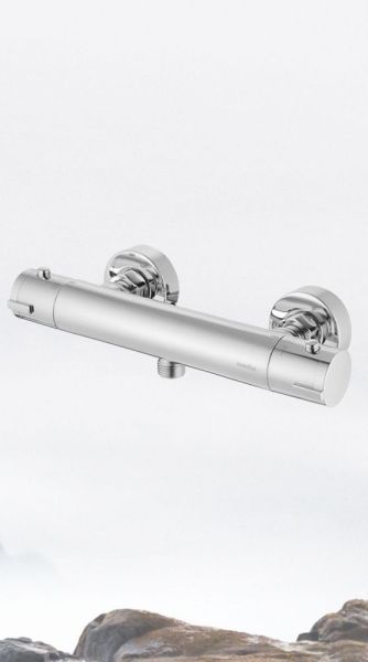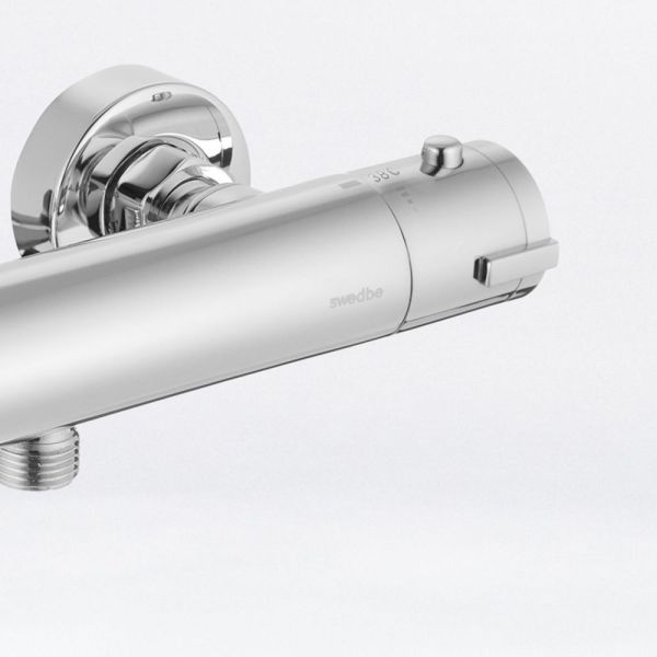 Термостат для душа Swedbe Mercury — надёжный смеситель от шведского бренда Swedbe. Оснащён «умным» картриджем. Благодаря обратным клапанам решается проблема «выдавливания» холодной воды горячей из-за разницы давления, когда температуру воды отрегулировать невозможно. Клапаны чётко разделяют холодную и горячую воду, исключая подмес. Это важно в тех домах, где есть сильная разница давления в стояках. В моделе предусмотрен ограничитель температуры, предустановленный на отметке 38 градусов, что считается идеальным значением для комфортного мытья. Можно не бояться обжечься при повороте рукоятки температуры, что актуально для семей с маленькими детьми.