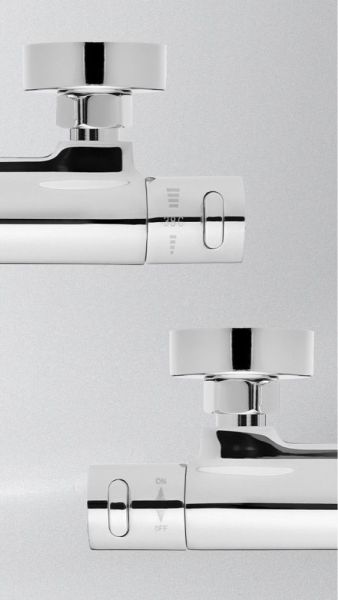 Термостат для душа Swedbe Mercury — надёжный смеситель от шведского бренда Swedbe. Оснащён «умным» картриджем. Благодаря обратным клапанам решается проблема «выдавливания» холодной воды горячей из-за разницы давления, когда температуру воды отрегулировать невозможно. Клапаны чётко разделяют холодную и горячую воду, исключая подмес. Это важно в тех домах, где есть сильная разница давления в стояках. В моделе предусмотрен ограничитель температуры, предустановленный на отметке 38 градусов, что считается идеальным значением для комфортного мытья. Можно не бояться обжечься при повороте рукоятки температуры, что актуально для семей с маленькими детьми.
