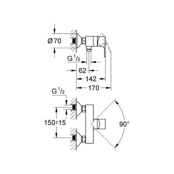 Механизм: керамический картридж 40 <a data-im="sng" href="https://santehnika-tut.ru/product/smesitel-dlya-dusha-grohe-vigour-75143026-hrom-275801.html" >Смеситель для душа Grohe Vigour 75143026 Хром</a> мм.
