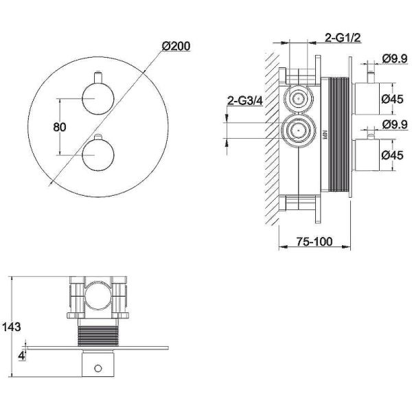 Внешняя часть смесителя на 2 потребителя WHITECROSS Y1236CR (хром)