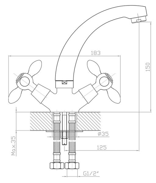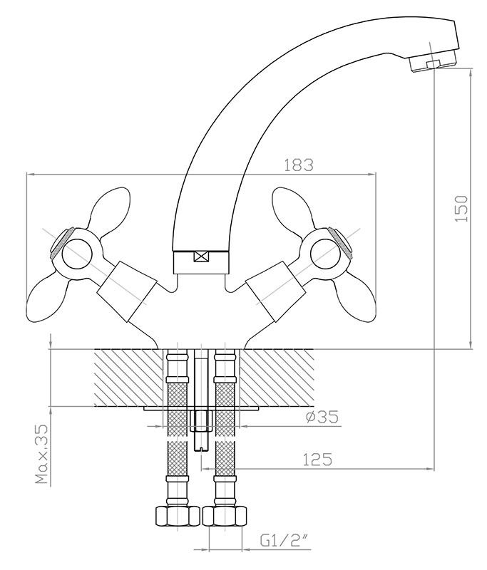 • Высота смесителя:
