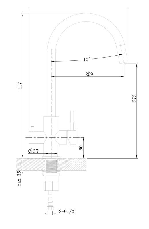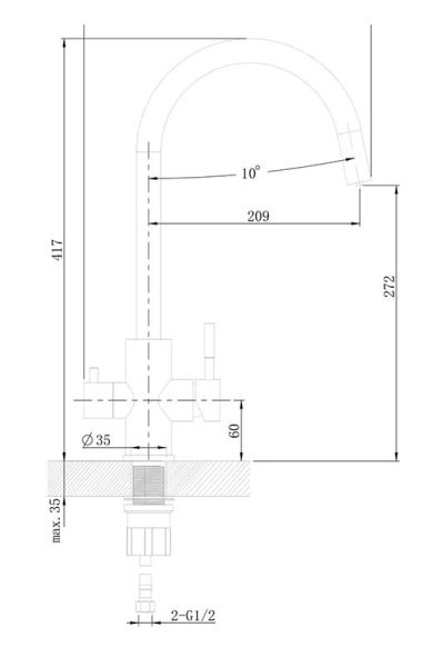 • Высота смесителя: