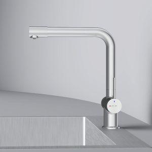 Встречайте долгожданное пополнение нашумевшей коллекции Func — кухонные смесители с оригинальными «фишками», характерными для всей коллекции. Дизайн, характерный только для премиум-сегмента, благодаря собственным дизайнерам бренда теперь представлен и в более доступной ценовой категории. Смеситель оснащён встроенным каналом для подачи питьевой воды. Чтобы получить питьевую воду, воспользуйтесь ручкой, расположенной с левой стороны корпуса; для обычной воды управляйте смесителем привычным образом. Размер (Ш/Г/В): 135x265x298 мм. Материал - нержавеющая сталь, цинк, латунь. Цвет - сатин. Тип управления - однозахватный. Излив - поворотный.
