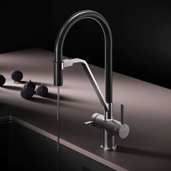 Встречайте долгожданное пополнение нашумевшей коллекции Func — кухонные смесители с оригинальными «фишками», характерными для всей коллекции. Дизайн, характерный только для премиум-сегмента, благодаря собственным дизайнерам бренда теперь представлен и в более доступной ценовой категории. Смеситель оснащён встроенным каналом для подачи питьевой воды. Чтобы получить питьевую воду, воспользуйтесь ручкой, расположенной с левой стороны корпуса; для обычной воды управляйте смесителем привычным образом. Гибкий излив смесителя позволяет справляться с любыми задачами и превращает его в по-настоящему профессиональный инструмент на вашей кухне. Размер (Ш/Г/В): 135x237x453 мм. Материал - нержавеющая сталь, цинк, латунь. Цвет - сатин. Тип управления - однозахватный. Излив - гибкий.