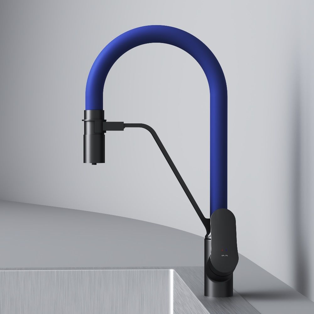Смеситель для кухни AM.PM Like F8007827 синийБезусловный лидер среди кухонных смесителей бренда – стильный и функциональный смеситель с профессиональным изливом и встроенным каналом для питьевой воды из культовой коллекции Like. Гибкий излив значительно расширяет зону использования смесителя, гарантирует легкий уход за мойкой и наполнение емкостей любого размера. Излив устойчив к загрязнениям, перегибам и внешним воздействиям. Удобный магнитный притягиватель для фиксации излива. Смеситель оснащен встроенным каналом для питьевой воды. Благодаря прогрессивной технологии Fresh Boost при вращении ручки на 90 градусов вы можете наслаждаться чистой питьевой водой. Для получения обычной воды, просто управляйте смесителем привычным способом. Эксклюзивная разработка для АМ.РМ: специально спроектированный керамический картридж SoftMotion 35 мм обеспечивает низкий уровень шума, выдерживает любые перепады давления в водопроводной сети. Эффектное сочетание цветов - матовый черный корпус смесителя и синий цвет излива станет ярким дизайнерким решенем на кухне..