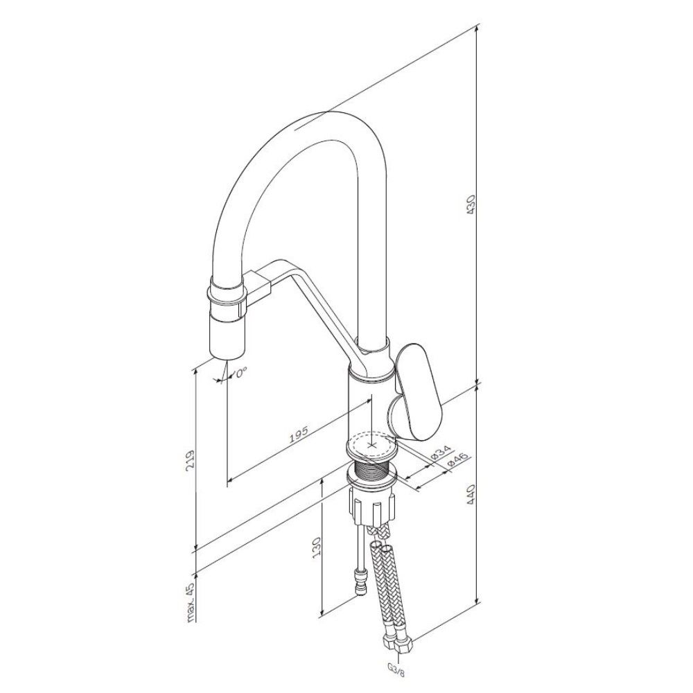 • Высота смесителя: