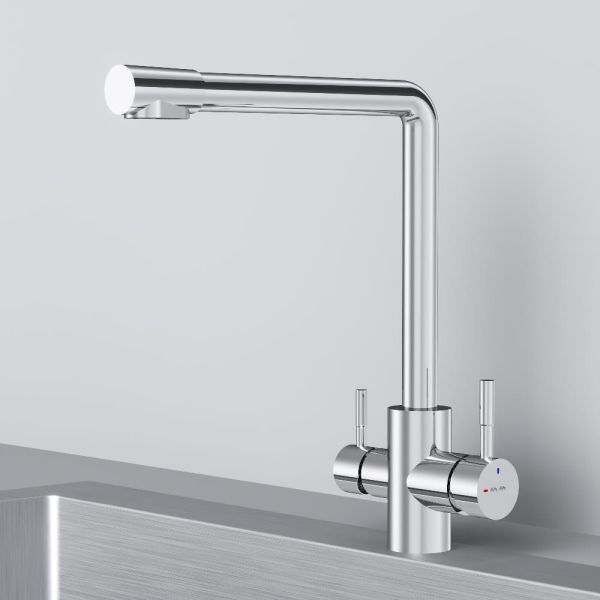 Смеситель оснащен встроенным каналом для питьевой воды. Для получения питьевой воды воспользуйтесь ручкой, расположенной с левой стороны корпуса, для получения обычной воды, просто управляйте смесителем привычным способом.