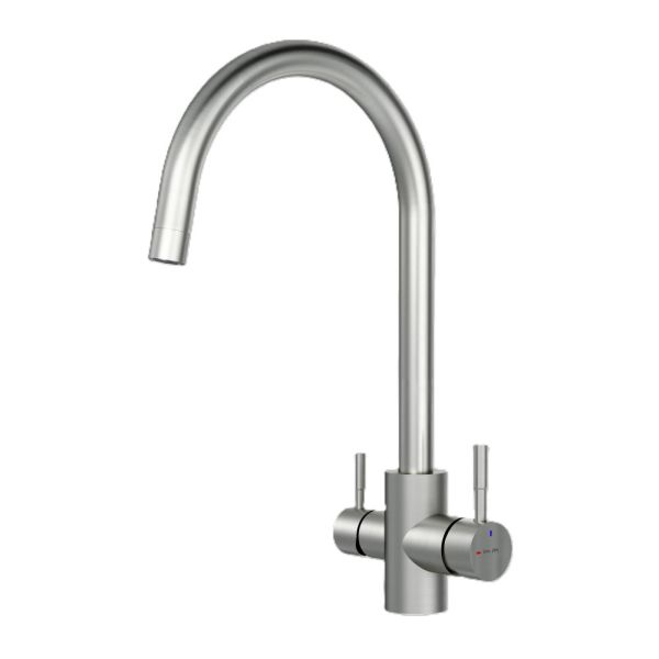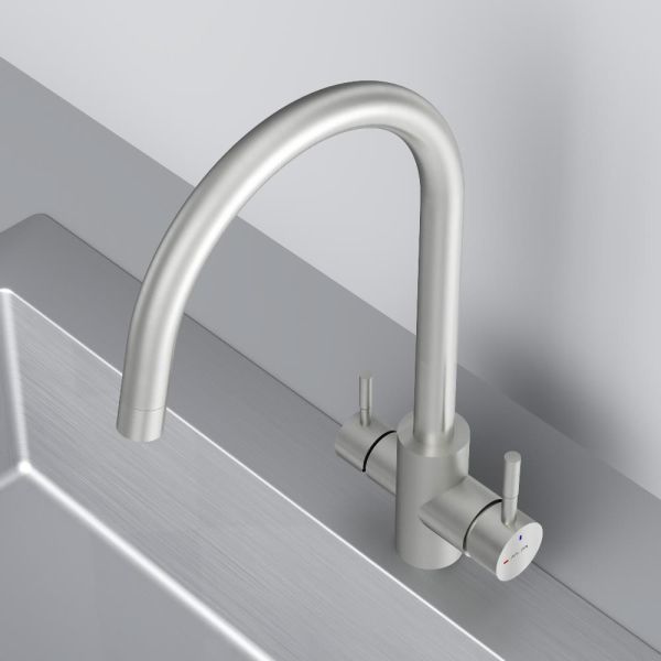 Смеситель оснащен встроенным каналом для питьевой воды. Для получения питьевой воды воспользуйтесь ручкой, расположенной с левой стороны корпуса, для получения обычной воды, просто управляйте смесителем привычным способом.