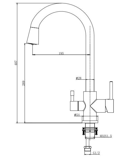 • оптимальная длина подводкиВысота излива (см): 26,9